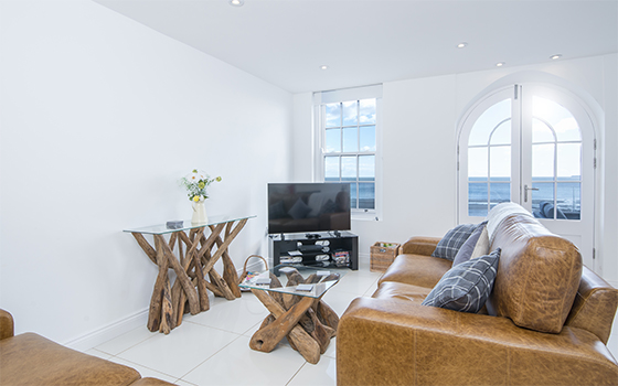 3 Bed cottage – Sleeps 6 will accommodate up to 1 pet Capel Swn y Mor is a beautifully converted Victorian chapel set on the seafront in Amroth, with the beach just across the road and stunning views over Carmarthen Bay. The light, open-plan living space features tall arched windows, contemporary furnishings and French doors leading to a balcony – perfect for dining or relaxing while enjoying the sea views. Upstairs, two double bedrooms with original beams and wooden floors both overlook the water. With pubs, cafés and restaurants within walking distance and the Pembrokeshire Coastal Path on the doorstep, it’s an ideal base for exploring nearby Wiseman’s Bridge, Saundersfoot and Tenby. A truly special seaside retreat you won’t want to leave. There is a pet supplement payable of £15 per animal per week or part thereof.