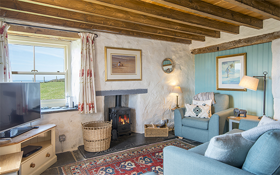 3 Bed cottage – Sleeps 6 will accommodate up to 2 pets Penrhyn is a traditional split-level stone cottage full of character, featuring Welsh settles and locally made woollen curtains and bedspreads. The kitchen/breakfast room enjoys beautiful sea views, and with no electricity, oil lamps and candles create a wonderfully peaceful, back-to-basics atmosphere. There are books, games and a piano (bring your own music) for relaxed evenings. Outside, enjoy meals on the patio or lawn while taking in dramatic sea views and spectacular sunsets. A garden gate leads directly onto the Pembrokeshire Coastal Path for breathtaking walks, where ponies, seals and porpoises can sometimes be seen. Reached via a long-gated track through National Trust land, Penrhyn offers a truly magical and secluded escape. There is a pet supplement payable of £15 per animal per week or part thereof.