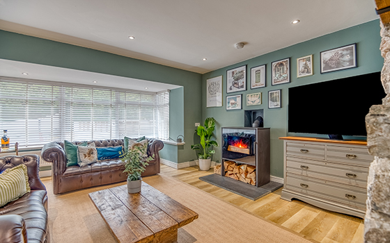 5 Bed cottage – Sleeps 10 St Marys Hill Chapel is a beautifully furnished detached holiday home just a 5-minute walk from the centre of Tenby and its sandy beaches. Stylishly designed with a mix of modern and traditional furnishings, it offers spacious living areas including a well-equipped kitchen/diner, a cosy sitting room with leather Chesterfield sofas and a wood burner, plus a study area. Upstairs are five spacious bedrooms spread over two floors, three with ensuite shower rooms, all featuring luxury beds and fresh linen. Outside, the enclosed terraced garden includes seating areas and a hot tub – perfect for relaxing under the stars.